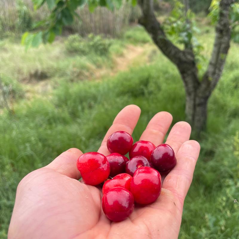 Juni stond in het teken van overvloed en zorg. De kersen waren rijp en de oogst voelde als een beloning voor het werk van eerdere maanden. Zoet, vol en gedeeld met iedereen die meehielp.